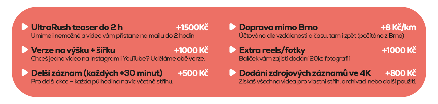 Hotový sestřih vám dodáme do 24 hodin – ideální pro sdílení na sociálních sítích, prezentaci firmy nebo jako stylovou památku pro účastníky.